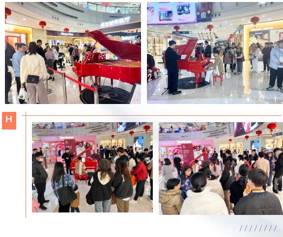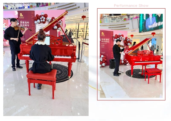 哈曼尼红色三角钢琴HG-175R7非凡的表现力众所周知,色彩丰富的和弦功能无所匹敌;其音域宽广,音色优美,乐阶稳定,体现典雅的古罗马风格,简洁而不失高贵,出类拔萃的品质,尽情发挥抒发丰富的音乐感情,音色的美化也达到了极致。本场活动特邀音乐学院的老师展现他们的青春活力,为商场的顾客带来了一首首当代流行歌曲、经典老歌……或激昂或舒缓,或澎湃或轻柔,美妙的音符重现波澜壮阔的红色画卷,形式多样的互动活动吸引了不少市民、顾客前来体验,气氛热闹非凡。